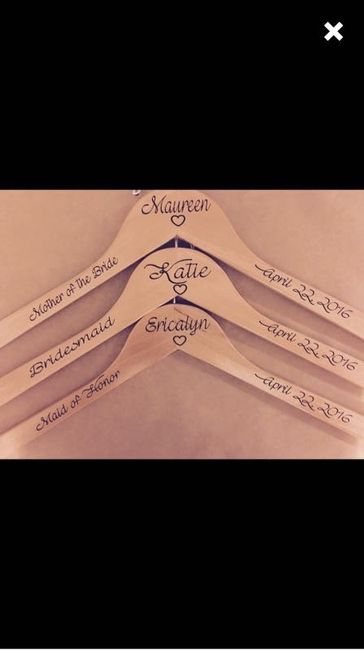 My hanger for my dress just came in and I love it! I saw this great tutorial online for DIY bridesmaid hangers so I plan to start on this in about two weeks! Show me any pictures you have of any custom hangers from your wedding or what you plan to...