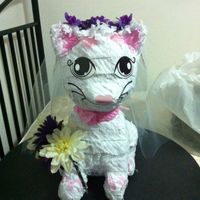 3915 days agoJust finished the piñata for my rehearsal dinner (taco bar). I didn't make the whole thing, just added the veil with flowers, bouquet, and a little diamond on the paw. Will be so sad watching the kids destroy her
