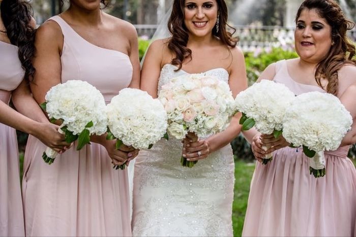 I am wanting my girls to have all white flowers. My FMIL is doing my flowers but I am picking them out. We are using artificial flowers. My problem is that want each BM (I have 9) to have a different type of flower but having a hard time finding a...