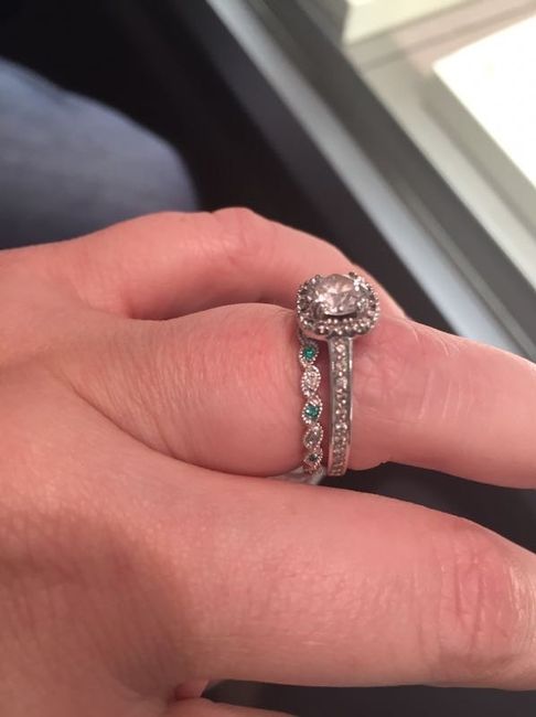 Hello Ladies! My fiance bought me this ring but we got so exited that we didn't look for a band to go with it. It is currently being sized I will get it around valentine day. We are getting married next year so i have time to look for one. We live in...