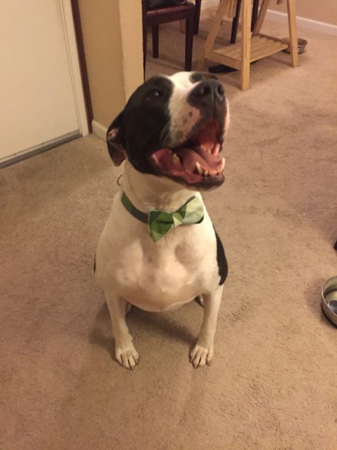 We just got a puppy (pic) and we want him to be a part of our special day, but we don't know what he will do. He will be just over a year, but he's really smart and calm. I was thinking of having him walk down with the ring bearer, but then what do...