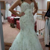 3832 days agoI don't post on here a lot, but I'm too excited not to share- my dress came in EARLY!!!! I am still so in love with it!!! Its a little tight but I have a few months to fix that We found a few stones that were lose and one that fell off.. so they are...