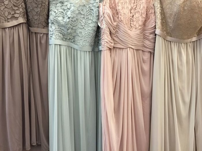 So excited! Yesterday we finally picked bridesmaid dresses! Just wanted to share! These are the colors, but the girls are picking the type of dress, strapless or halter etc.. The one that seems light blue, is actually more super soft grey, bad...