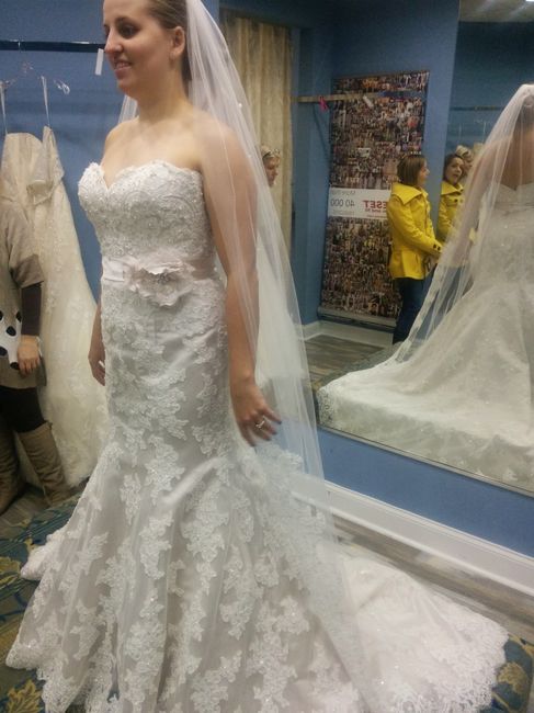 Today was such an awesome day. I got a call on Thursday that my dress was in and managed to get an appointment for today. I was super excited but a little scared cuz I never actually tried on my dress.... I fell in love with two Sophia tolli dresses...
