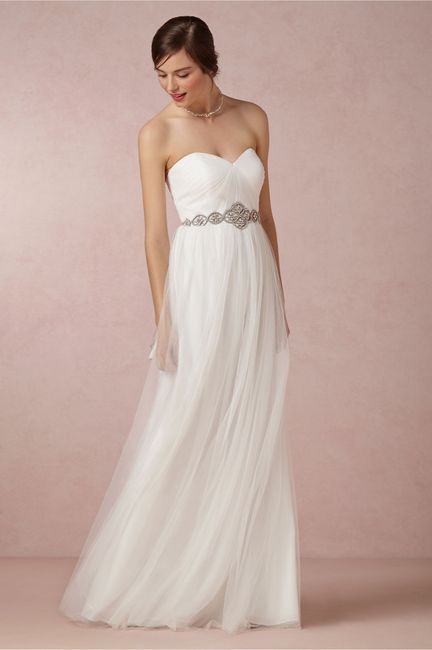 So I bought this dress from BHDLN. I'm very happy with it, especially the price, but I have to add to it in some way. I don't want strapless so I am debating what kind of straps to add. Other ideas I am playing with are bridal belt, chunky sparkly...