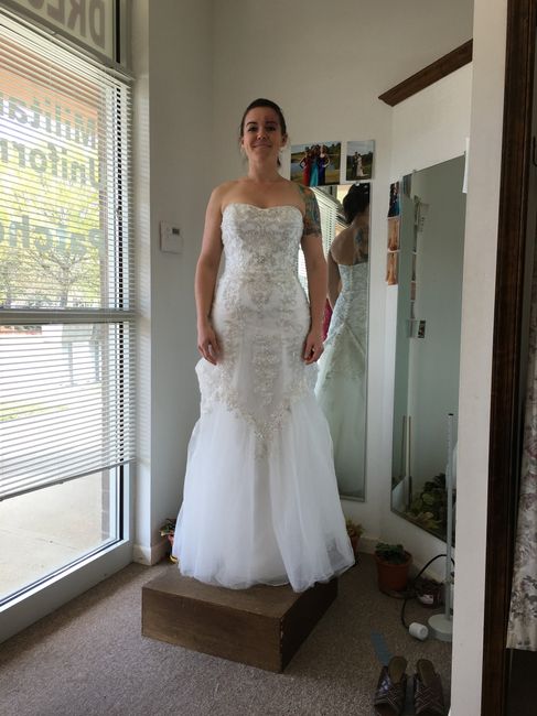 I just got my final alterations back from the seamstress after we totally modified the shape of my dress (was originally a-line), and I LOVE how the bustle looks from the back, but it sticks out a little on the sides from the front (just below my...