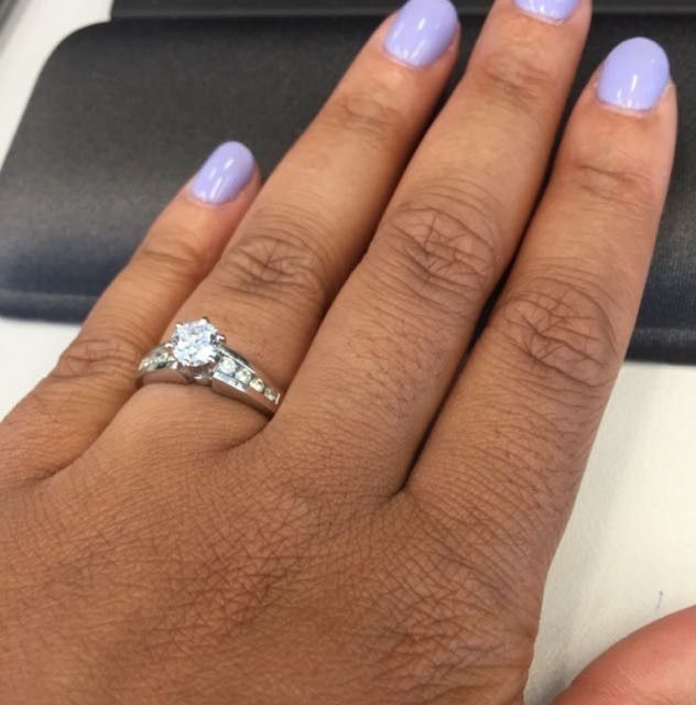 I am in love with my engagement ring! I was totally not expecting such a beautiful ring. A White Sapphire round stone and black diamonds along all sides. What do your engagement rings look, ladies?