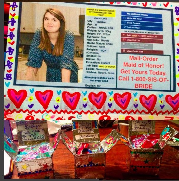 I'm looking for inexpensive cute boxes that I can send directly to my girls in the mail. I don't want to buy cute boxes that have to go in ugly mail boxes haha! Also does anyone have ideas of good things to include in the bridesmaid proposal? What...