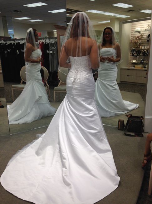 So initially when I tried on my dress I tried it on with an elbow length veil. After looking at the pic I didn't really like how short it was. Yesterday I tried on all lengths (Unfortunately only got pics of two - Cathedral and Chapel length). I...