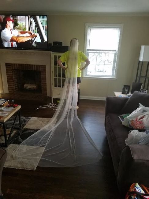 I'm trying to decide on my veil. I'm planning to go through Etsy so I wont have the ability to try it on before ordering. I'm stuck between a floor length 6ft long veil and a 7.5 ft long chapel veil. My dress has a long train but I don't want a...