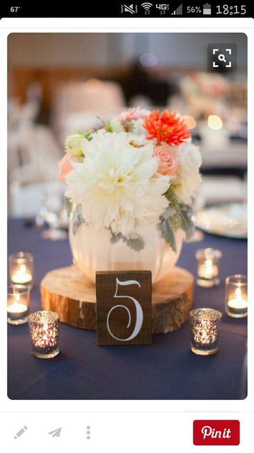I thought I'd finally settled on a centerpiece idea, but my mom has thrown a wrench into our plan by picking up a bunch of wood slices. They are cute though, so I'm trying to brainstorm how we can incorporate them. Our venue has rectangular tables,...