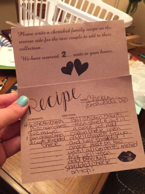Here is what I did! I added a place for a recipe on the back of my RSVP cards! Here is what they look like! I bought a special box to keep them all in as well!