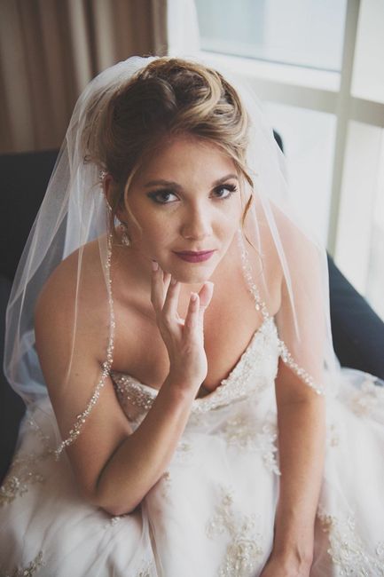 Hello everyone! Fairly new here. I am so undecided whether to have hair up or down Can you post pics of you on your wedding day would love to see pics