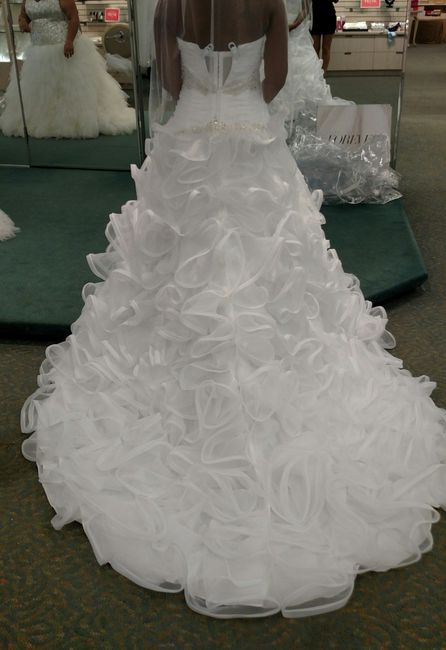 Long story short: I went dress shopping, just to get more ideas, and then, I found the dress. It was after I had fallen in love with another dress that I couldn't afford, and asked the consultant if she had anything similar in the $99 sale. She had...