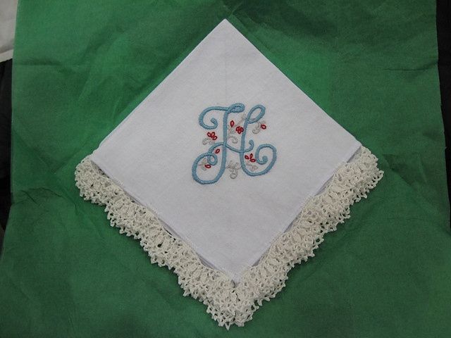 For my sister's (MOH) wedding 8 years ago, and my best friend's (BM) wedding 7 years ago, I made them each a handkerchief with their monogrammed initial. I crocheted the lace edging and embroidered the monogram. It's become a tradition that I do for...