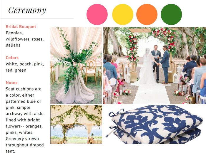Ok, so I am really hoping I didn't just butcher my dress here.... We are getting married in August in a venue that is almost ENTIRELY white (white limestone, marble, glass), and I am doing very BRIGHT tropical colors (see photo below) inspo1 inspo2...