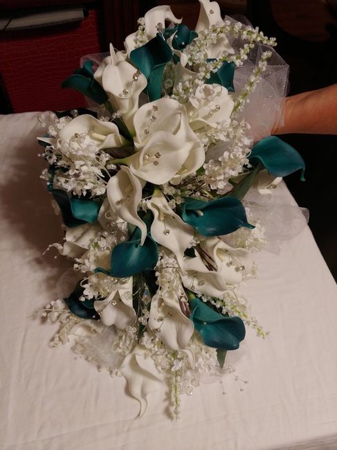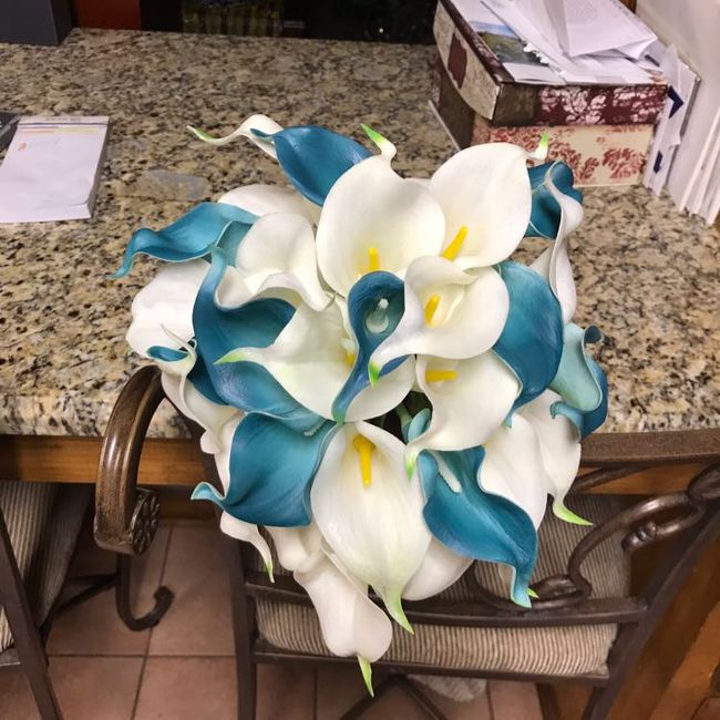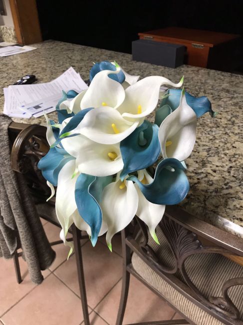 Spent 6 hours yesterday getting my bridesmaids flowers and my groomsmen flowers done. Mine are put together but still needs to be wired and put together but I got to see what it will look like.