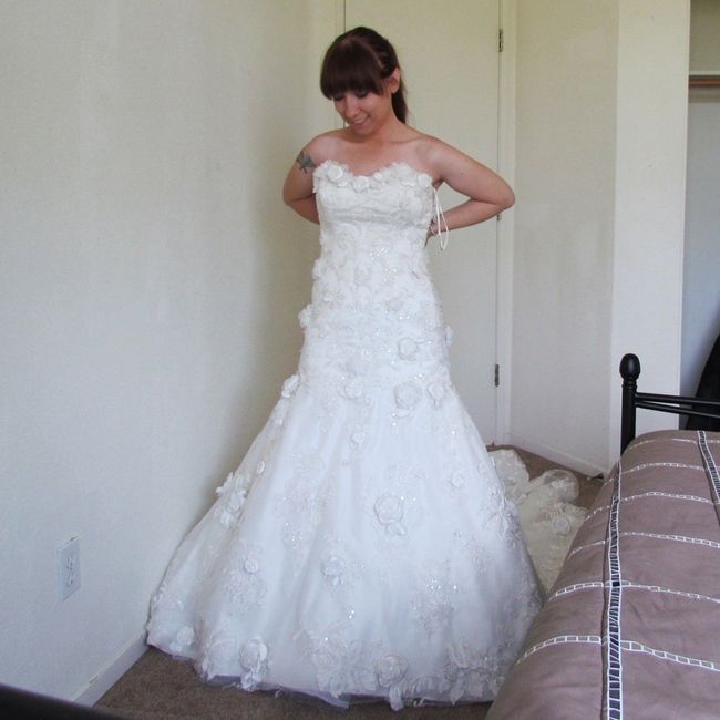 I strapped myself into the dress somehow.. trying to tighten a corset by yourself is not easy LOL. The fit is off and will obviously look better when I have help I didn't plan on wearing a veil, and choosing this dress made me not want one even...