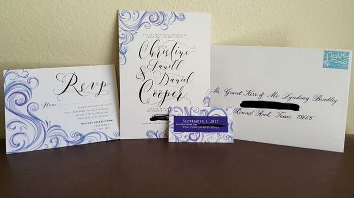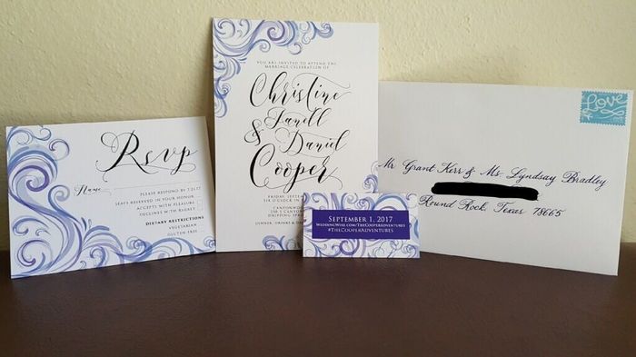 We took advantage of 4th of July deals and ordered invitations way earlier than we actually needed to so we could get 40% off. They won't be mailed until late September/early October...but they are HERE NOW!!! I'm happy with them for the most part...