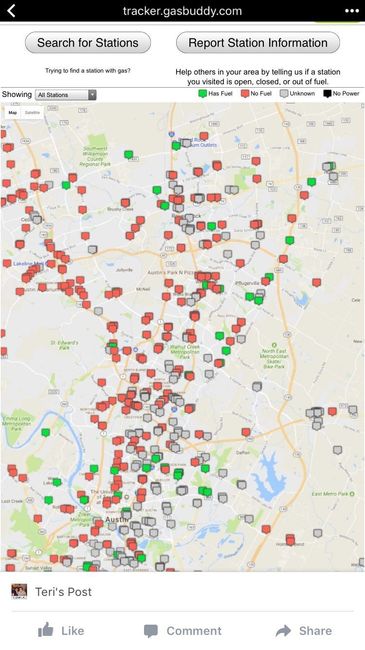 I don't even know how I could have expected this. Thanks to hurricane Harvey and the fear it instilled in Texans about a fuel shortage, the gas stations all over Austin are running out of gas. The stations that do have gas have 30+ people waiting in...