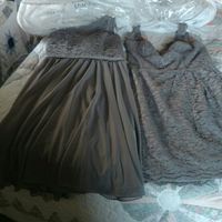 3694 days agoMy girls bridesmaids dresses came in and I love them! Three of the girls (BM) are wearing lace with two shoulders and one is wearing half lace one shoulder (MOH)