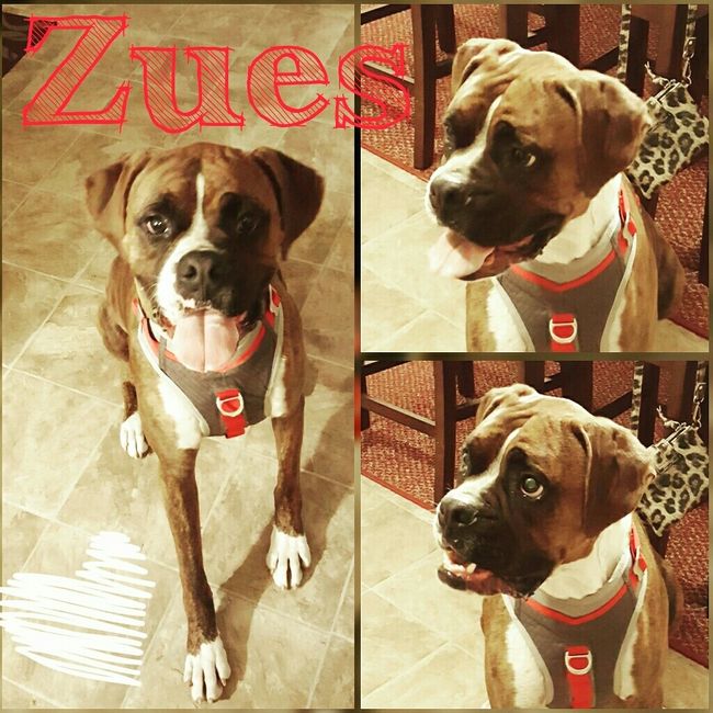 I have a boxer, his name is Zues.... He is so cute, he's a year old. HOWEVER, he's a monster!!!!!!! He knocks down my boys, he's constantly jumping on everyone and he's huge, he's knocked me over. We have a huge back yard. And he mysteriously...