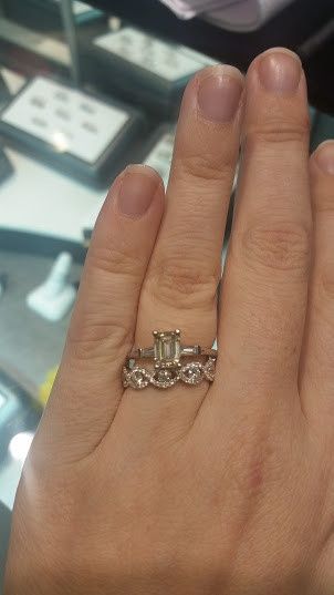 Anyone have a wedding band that doesn't "match" your engagement ring? I'm leaning towards a very contemporary band to (not) match my very traditional emerald cut diamond. My ER is very structured where the WB is very fluid and organic in shape. I was...