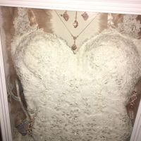 3416 days agoI bought a shadow box from Michaels. This was the biggest one I could find. I'm hoping to find an even bigger one to make my dress look a little less smushed. What do you all think? It's got my dress, shoes, jewelry, garter.