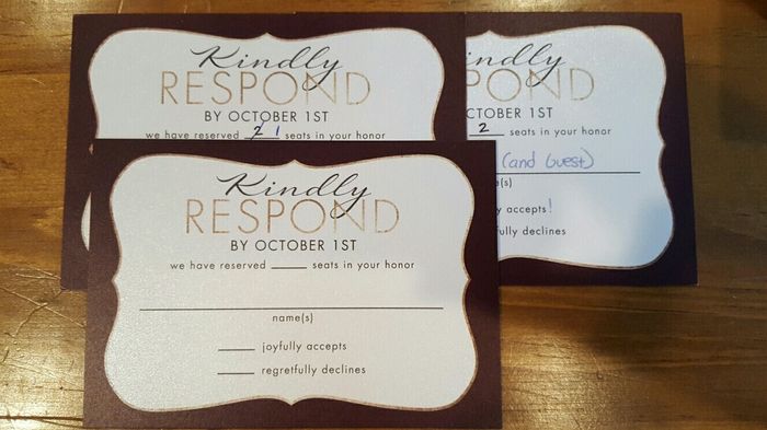 I have started to play with designing RSVP's, my hope is to order around Black Friday/Cyber Monday and save $. I have seen them designed to clearly show how many people are invited, I would assume for clarity's sake so people aren't bringing extra...