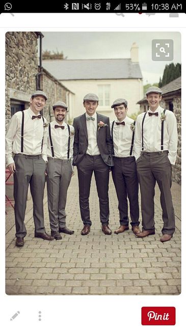 Im having a hard time deciding on what the bridesmaids will wear! The theme of my wedding is rustic/vintage so the groomsmen will wear suspenders and bowties and a hat just like in the pic below. The bridesmaids color is eggplant or plum since they...
