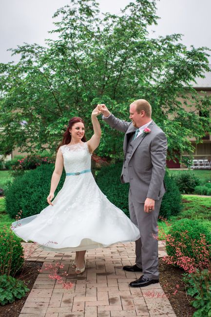 I've seen several brides here with adorable tea length dresses! Post a pic from your wedding, or dress shopping trip, and tell us the designer. Sadly, this cute polka dot dress is a discontinued design from Moonlight Bridal but I got it at a steal....