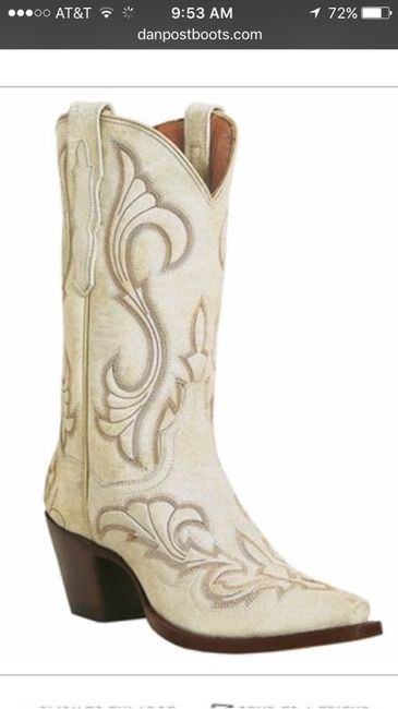 I'm a cowgirl at heart so FH and I will both be wearing cowboy boots on our big day. I can't decide what I want so I'm looking for some real wedding inspiraion. Pinterest turns up with the same 3 pairs of boots. Show me yours. Picture is one of my...