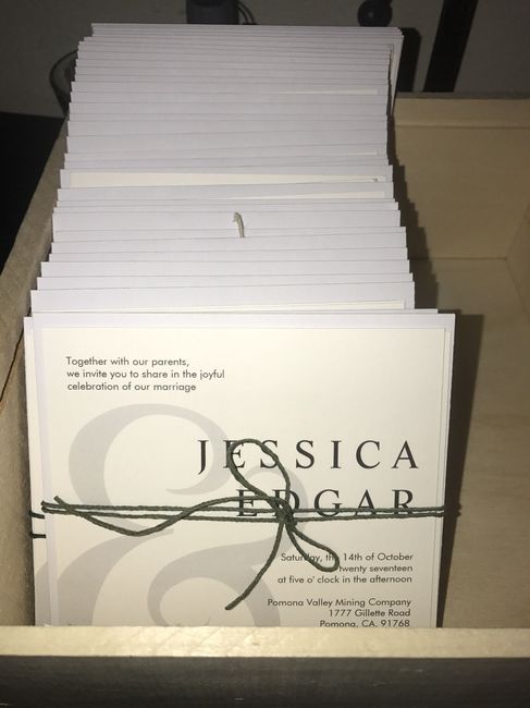 We took advantage of 4th of July deals and ordered invitations way earlier than we actually needed to so we could get 40% off. They won't be mailed until late September/early October...but they are HERE NOW!!! I'm happy with them for the most part...
