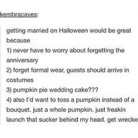 3730 days agoBecause I want to throw a Pumpkin instead of a bouquet............I thought this was HILARIOUS