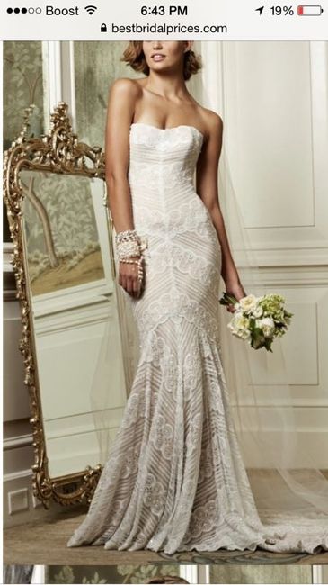 I originally wanted to wear a sexy mermaid style dress. My mom and I were out looking and we ran a across a beautiful gown. It was VERY inexpensive but I love it. I also think it could use something else. What do you ladies think?