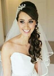 I don't want to do a total up-do; I'm leaning more towards half up or off to one side with the top bumped up. I really want to wear a sparkly headpiece/tiara and a veil. Anyone drawn towards the same type of hairstyle? Please share! Also, can a veil...
