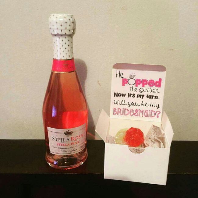 HI ladies, I want to create a cute personalized box for each of my bridesmaids and hopefully give to them at my engagement party..anyone have any photos to share if they made one? I was going to do a mini bottle of champagne, some bath stuff and...