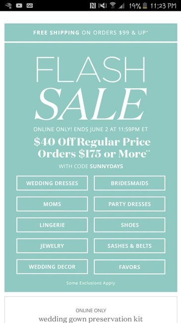 My FSIL and bridesmaid just told me about this sale! Hope it can help someone out!