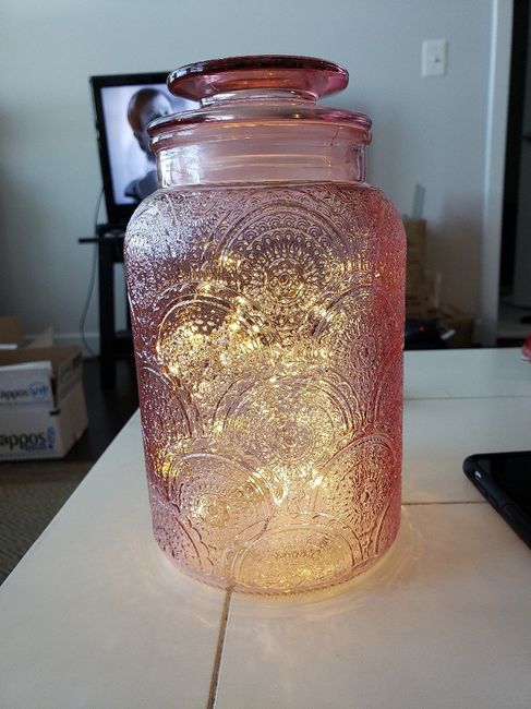I've been collecting these little jars from target for our wedding and thought I would share them with the boards! They are in the little dollar section (the bullet's playground black hole). The smaller jars are $1 and they come in the pink as...