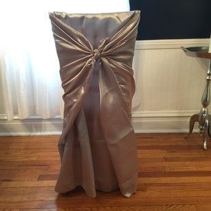 I found a great deal on some silver satin universal chair covers, which will look great compared to the plain brown folding chairs at our venue! However, I'm a little unsure of how to best match them with the rest of the linens. From a design...