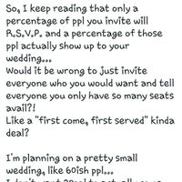 3535 days agoWhile scrollin Facebook a bride in a wedding group asked about inviting a bunch of people and saying it was first come first served..ummm what?!?!?