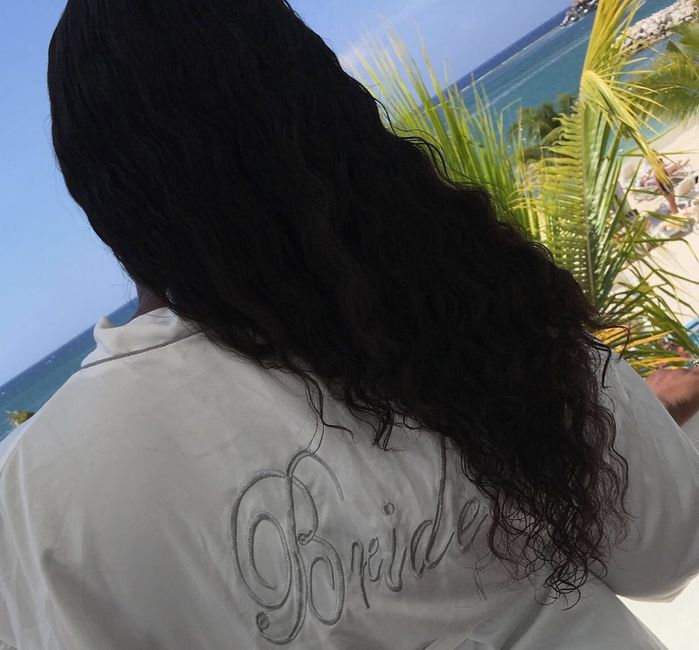 We finally did it and everything was so beautiful. Our wedding was in Montego Bay Jamaica at RIU Reggae on the beach. Had a morning brunch with my bridal party and then group pictures in the sand. I bought the girls these beautiful robes from Etsy...