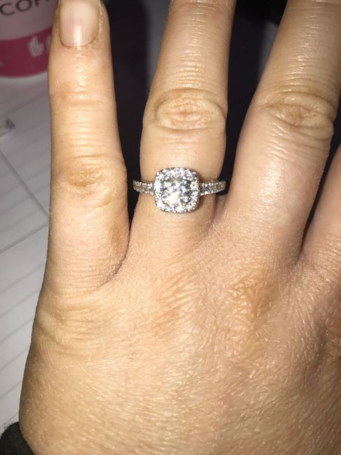 My FH proposed in Paris during a trip in January, and he had planned a custom ring, but unfortunately it would not have been ready by the time we left for trip. So in the meantime he got a small .10 carat ring just because he didn't want to NOT...