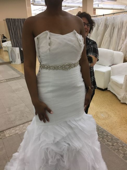 Which wedding belt do you like or neither? Please excuse all the pins. In the process of getting alterations.