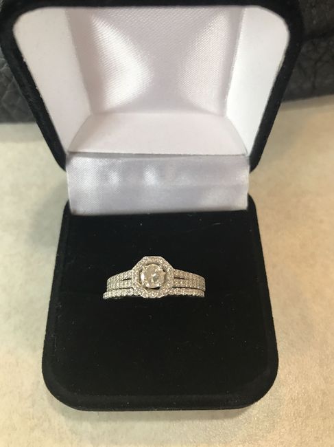 I'm so excited, I picked out my wedding band today it's on a little crooked (it was so small and I did not want to get it stuck), but you get the idea...