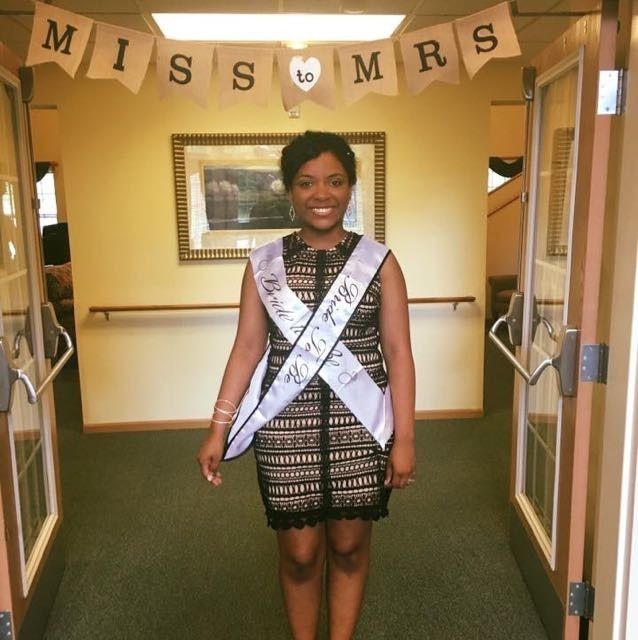 At my bridal shower we played "the dress game" where each team picks someone to be the bride and makes a wedding dress out of toilet paper. My mom made an album of my shower on her Facebook and there were pictures of the game and she put this picture...