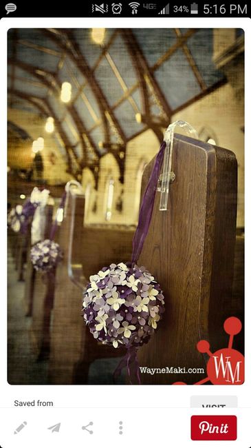 Does anyone have church aisle/pew decor inspiration? I am looking to add something to the aisles but am at a loss for something that isn't baby's breath in mason jars - not really my style. Our church's rules state that we cannot have candles, aisle...