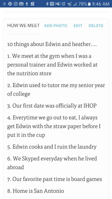 So on my wedding website, instead of writing a story of how we meet, I decided to just do 10 fun facts about us to keep it fun. I wasn't going to do a wedding website but my mom was adamant about it. Sure whatever. Anyways, I'm not an excellent...