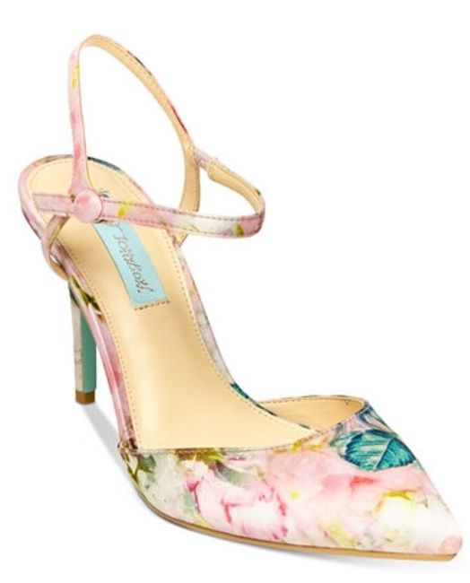 I fell in love with this fabric and ordered the closed toe pointy heel shoe. Then they came out with a chunky heel sandal. I don't normally wear heels so the chunky heel would be easier for me to handle, but I love the closed toe look. Wedding is...