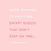 3129 days agoWeddingWire posted this on Facebook today and I relate to it on a very personal level.....with our RSVP due date on Sunday and 82 left to respond I must say it's a little frustrating.